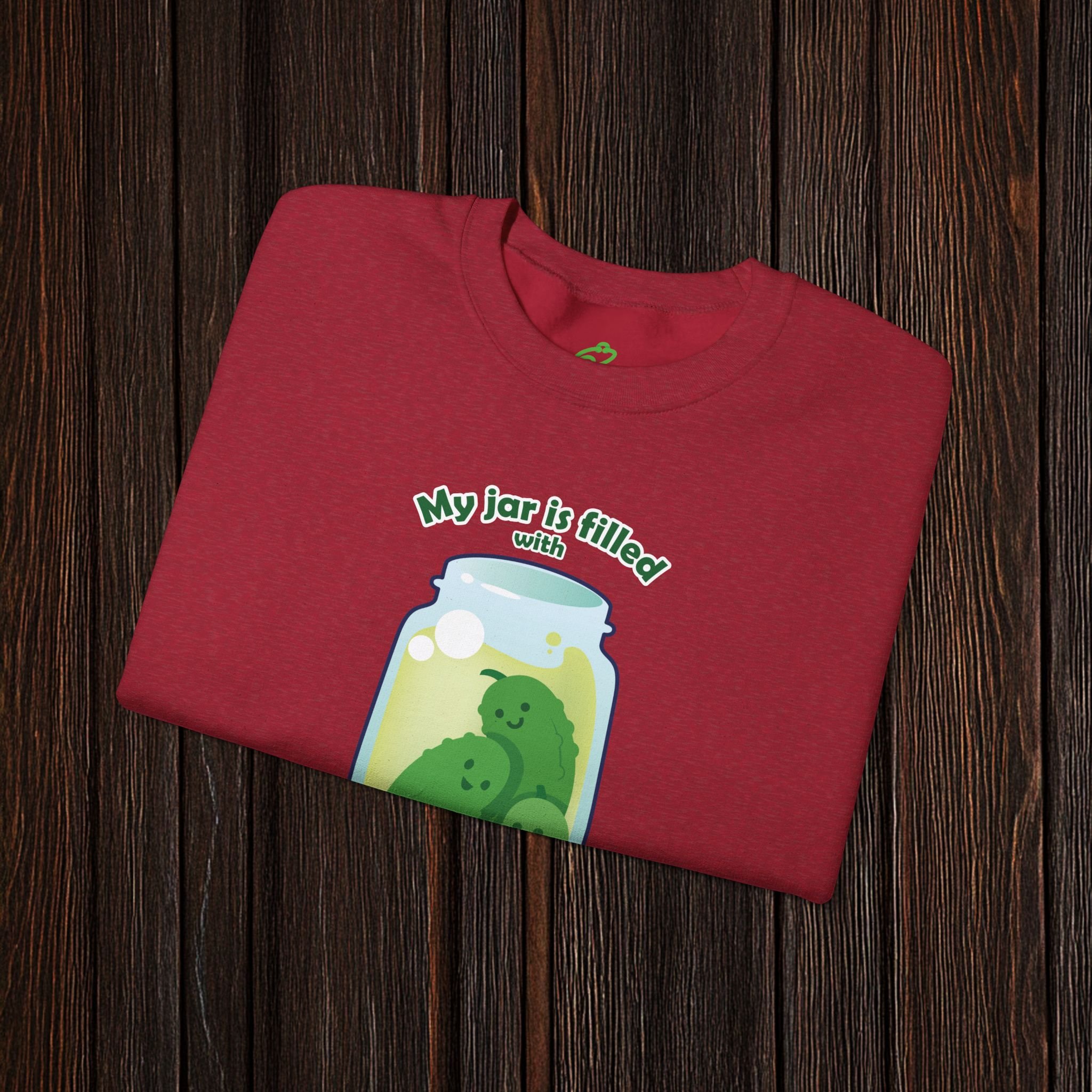 Add a splash of playful personality to your wardrobe with this delightfully quirky sweatshirt featuring a jar of animated pickles making silly, expressive faces. Paired with the phrase “My jar is filled with fickle pickles,” this design brings charm, humor, and a touch of chaos-in-a-jar energy to any outfit.