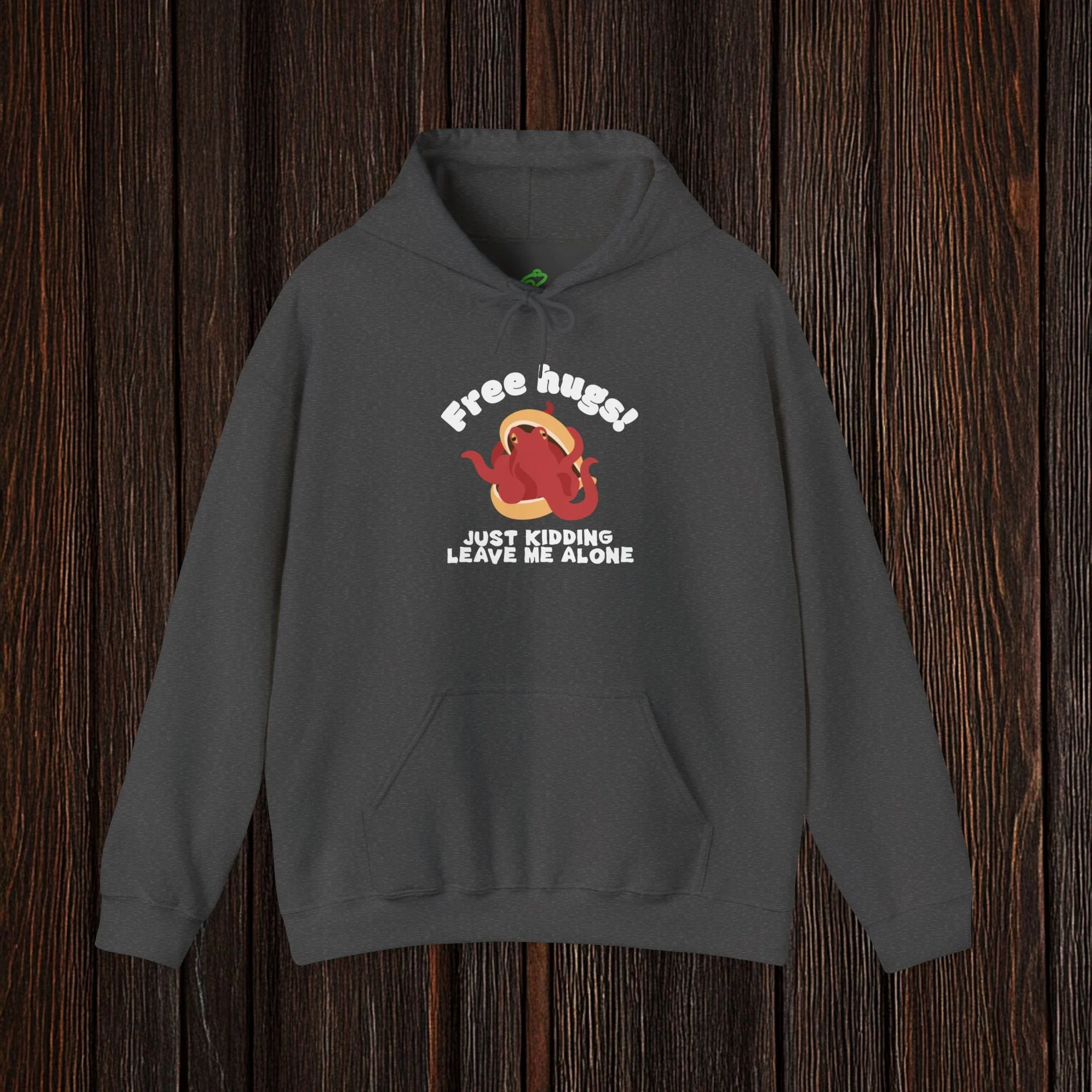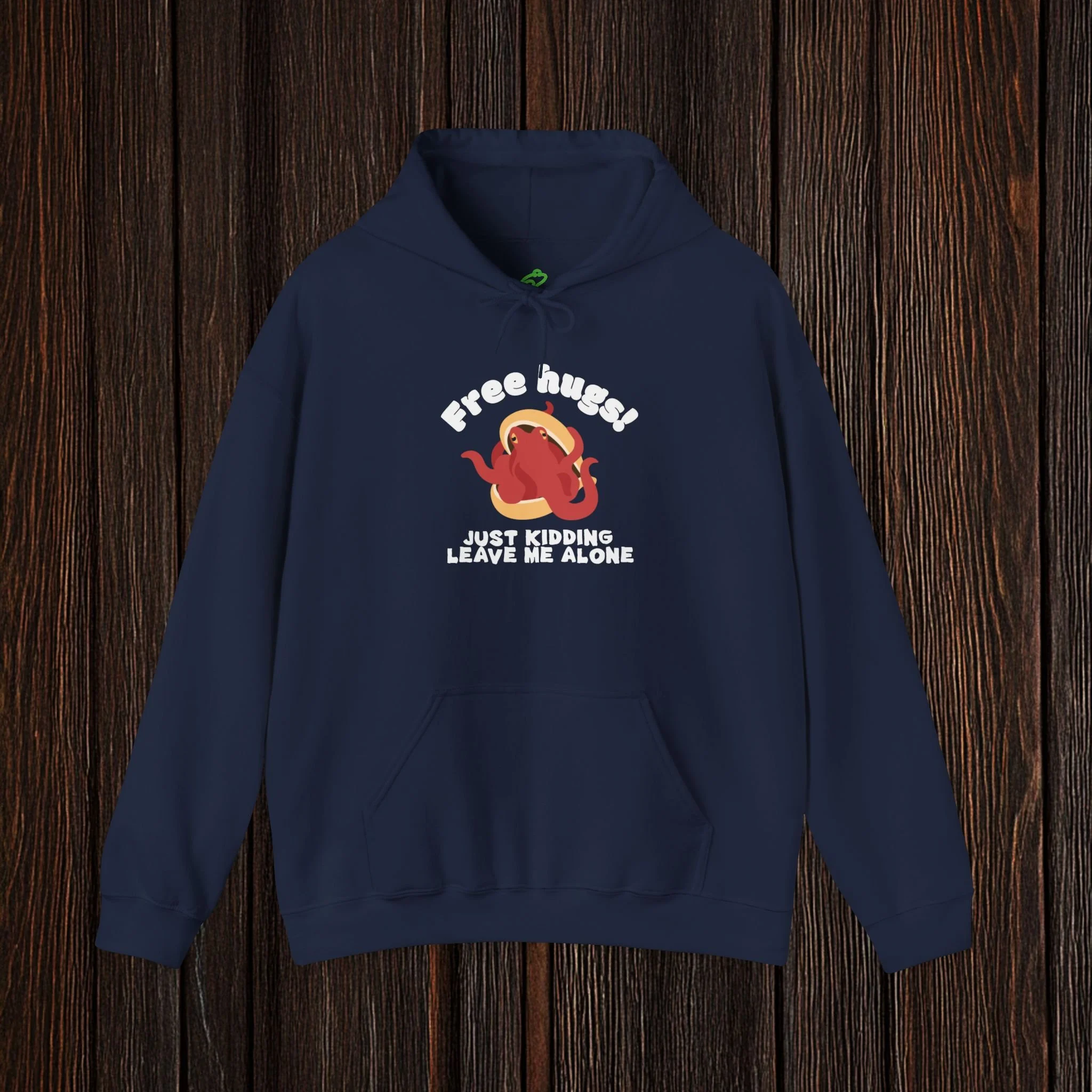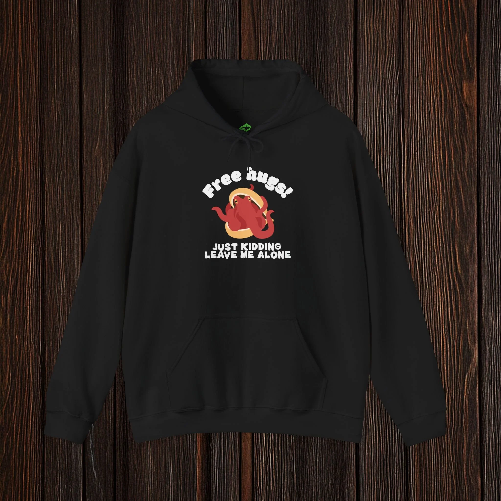 Spark a smile with this witty, boundary-setting tee featuring a bashful octopus tucked into its shell and the phrase “Free hugs! Just kidding, leave me alone.” Equal parts adorable and antisocial, this design perfectly captures the struggle between wanting connection and fiercely protecting your personal space.