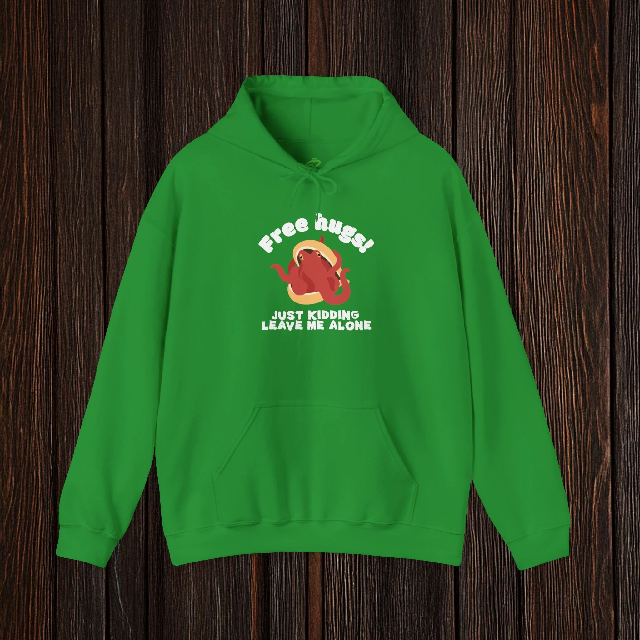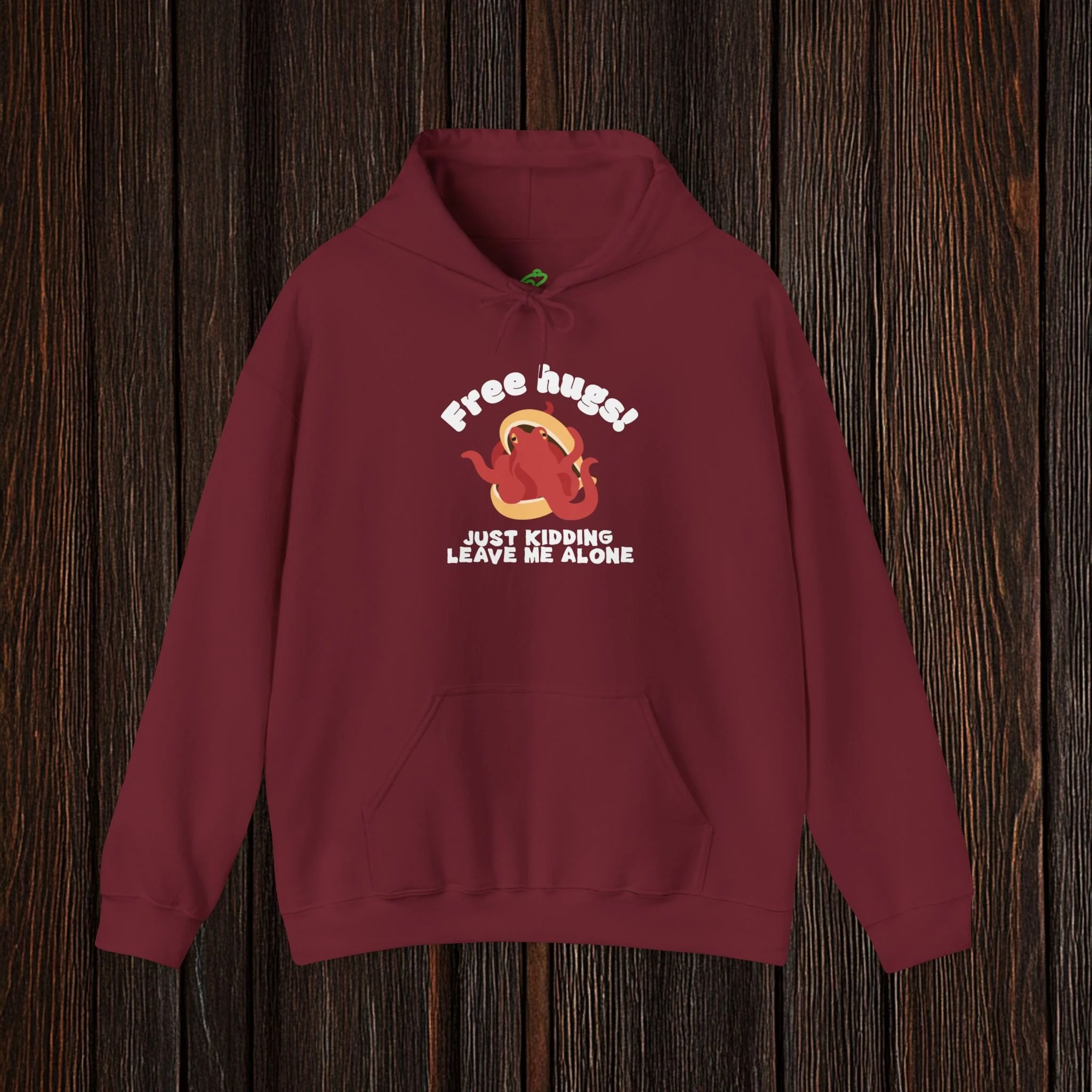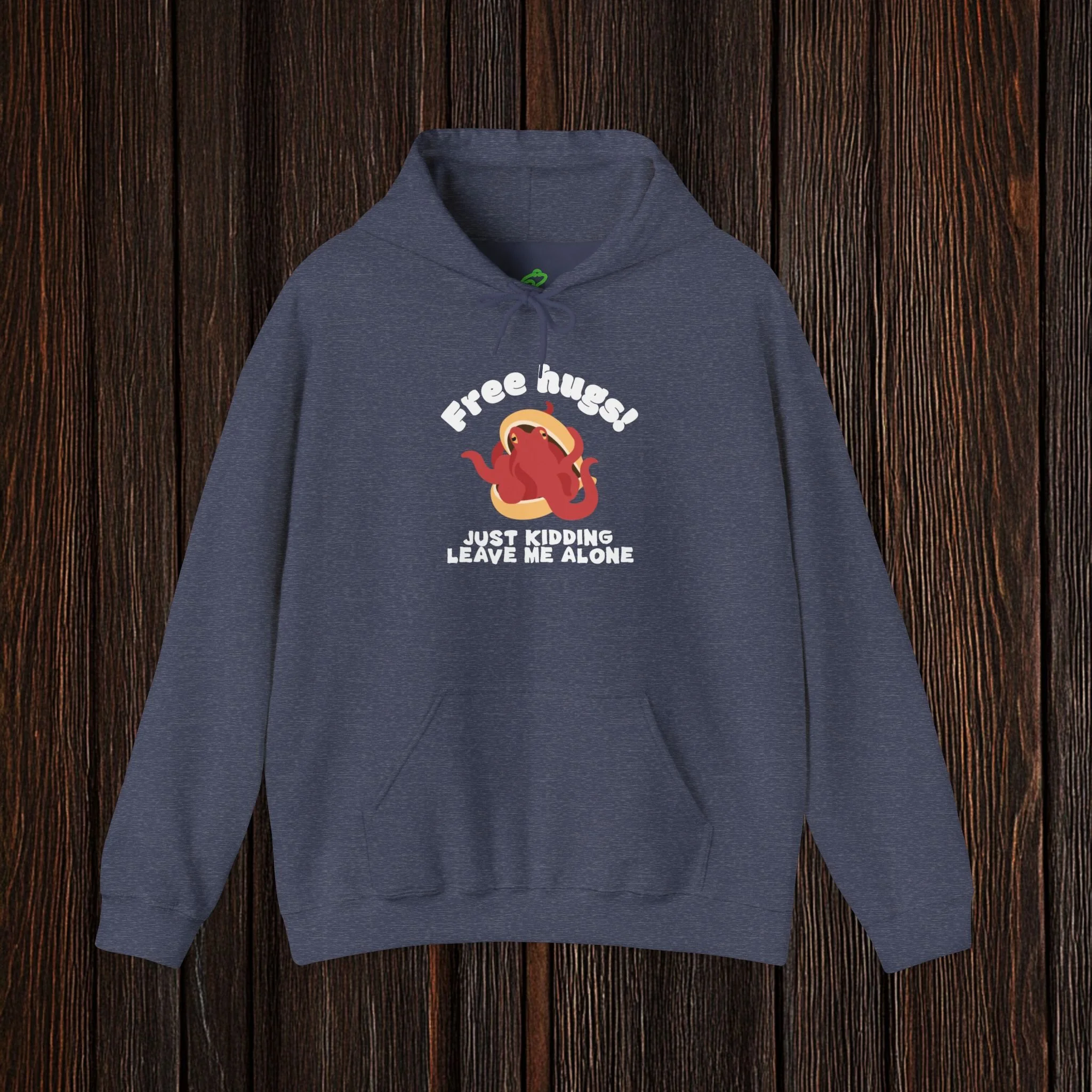Spark a smile with this witty, boundary-setting tee featuring a bashful octopus tucked into its shell and the phrase “Free hugs! Just kidding, leave me alone.” Equal parts adorable and antisocial, this design perfectly captures the struggle between wanting connection and fiercely protecting your personal space.