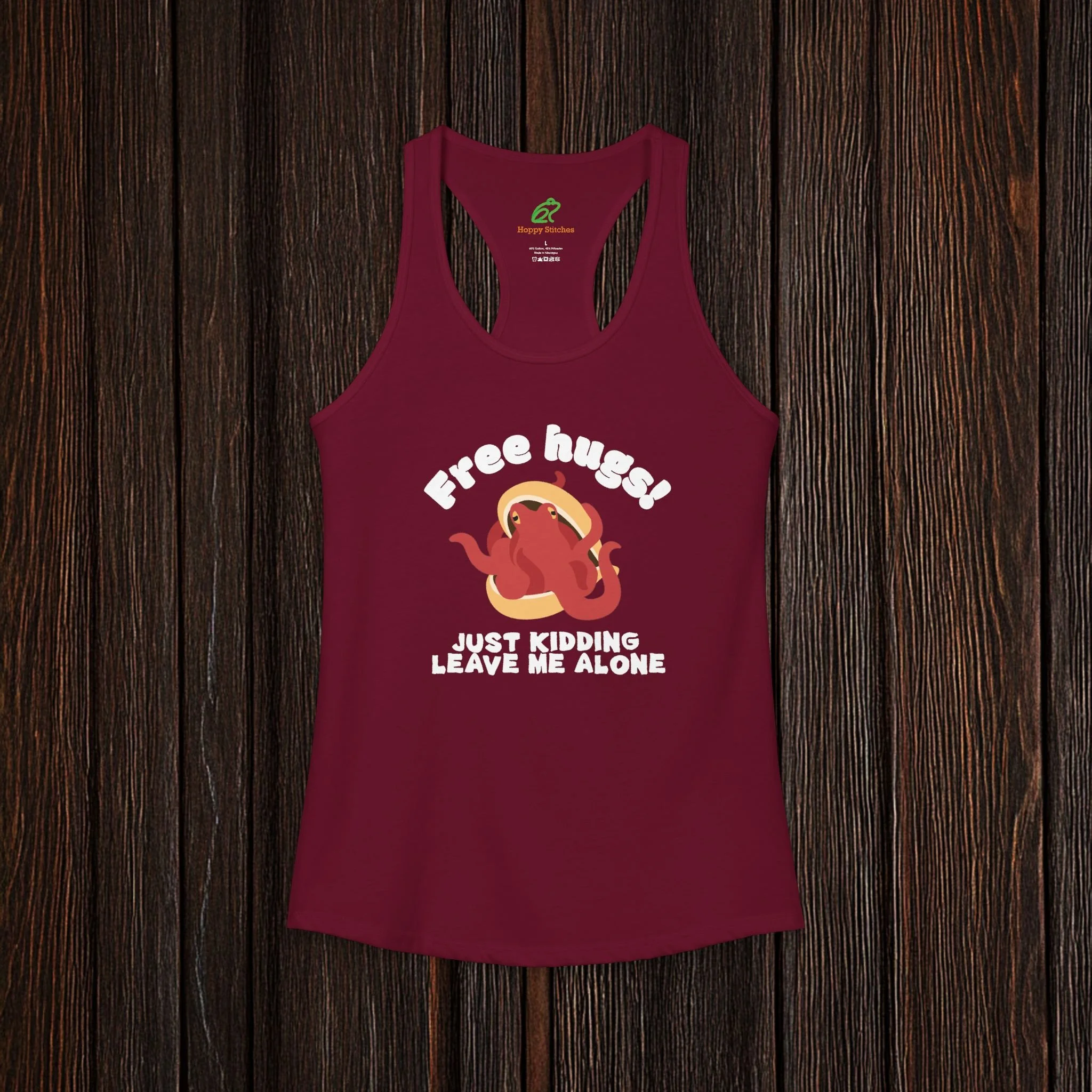 Spark a smile with this witty, boundary-setting tee featuring a bashful octopus tucked into its shell and the phrase “Free hugs! Just kidding, leave me alone.” Equal parts adorable and antisocial, this design perfectly captures the struggle between wanting connection and fiercely protecting your personal space.